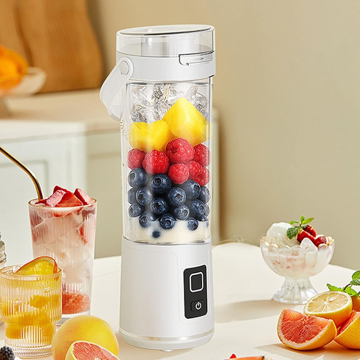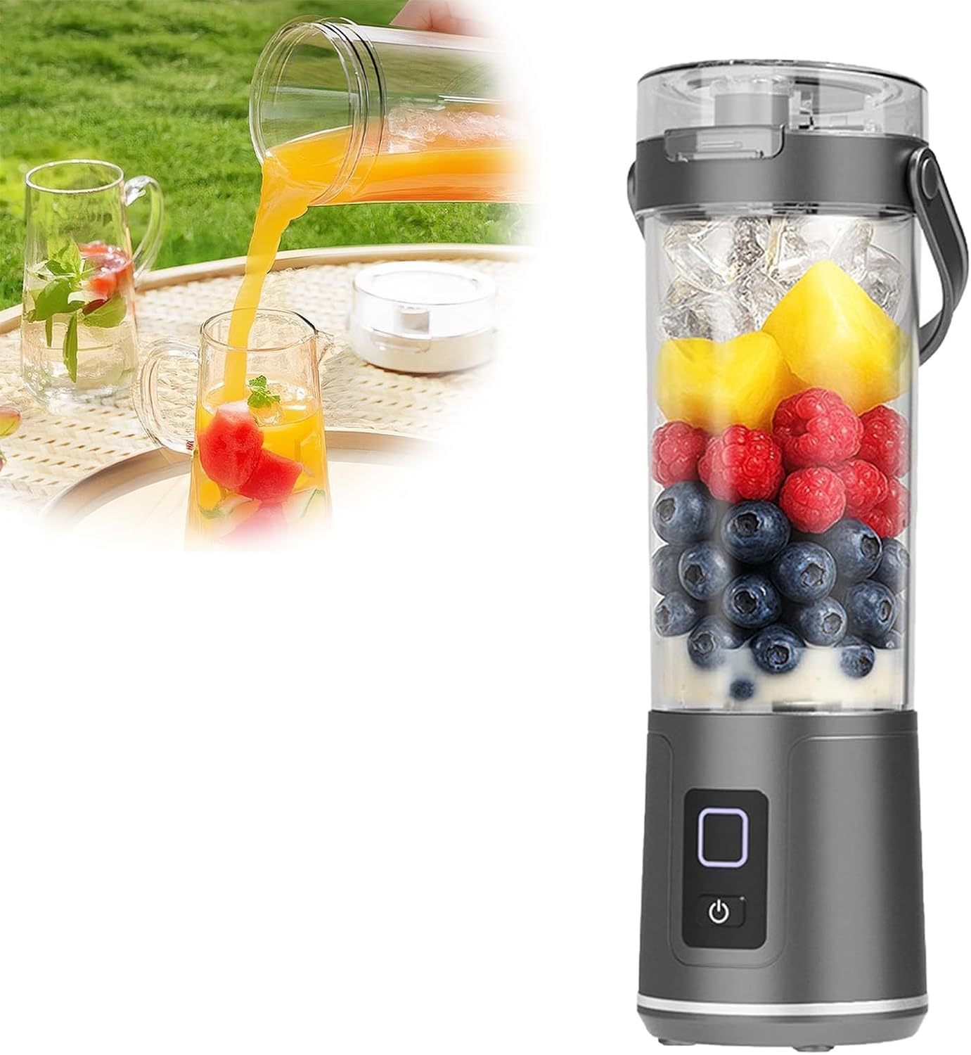 • Wireless Blending Freedom: USB-C rechargeable motor delivers tangle-free blending anywhere – perfect for travel, gym, or on-the-go smoothies without outlet restrictions. • 16oz Portable Powerhouse: Generous personal blender capacity processes single-serve smoothies or juices in 30 seconds – preserves maximum nutrients from fruits/veggies. • Leak-Proof Design: Sealed spout lid prevents spills in bags – blend and drink directly from the ABS plastic cup with zero cleanup transitions. • Dishwasher-Safe Convenience: All removable parts survive dishwasher cycles – quick-cleaning after use maintains hygiene for daily blending routines. • Compact Travel Essential: Mini footprint fits cup holders or backpacks – ideal for office desks, hotel rooms, or outdoor adventures with USB-C portability.
