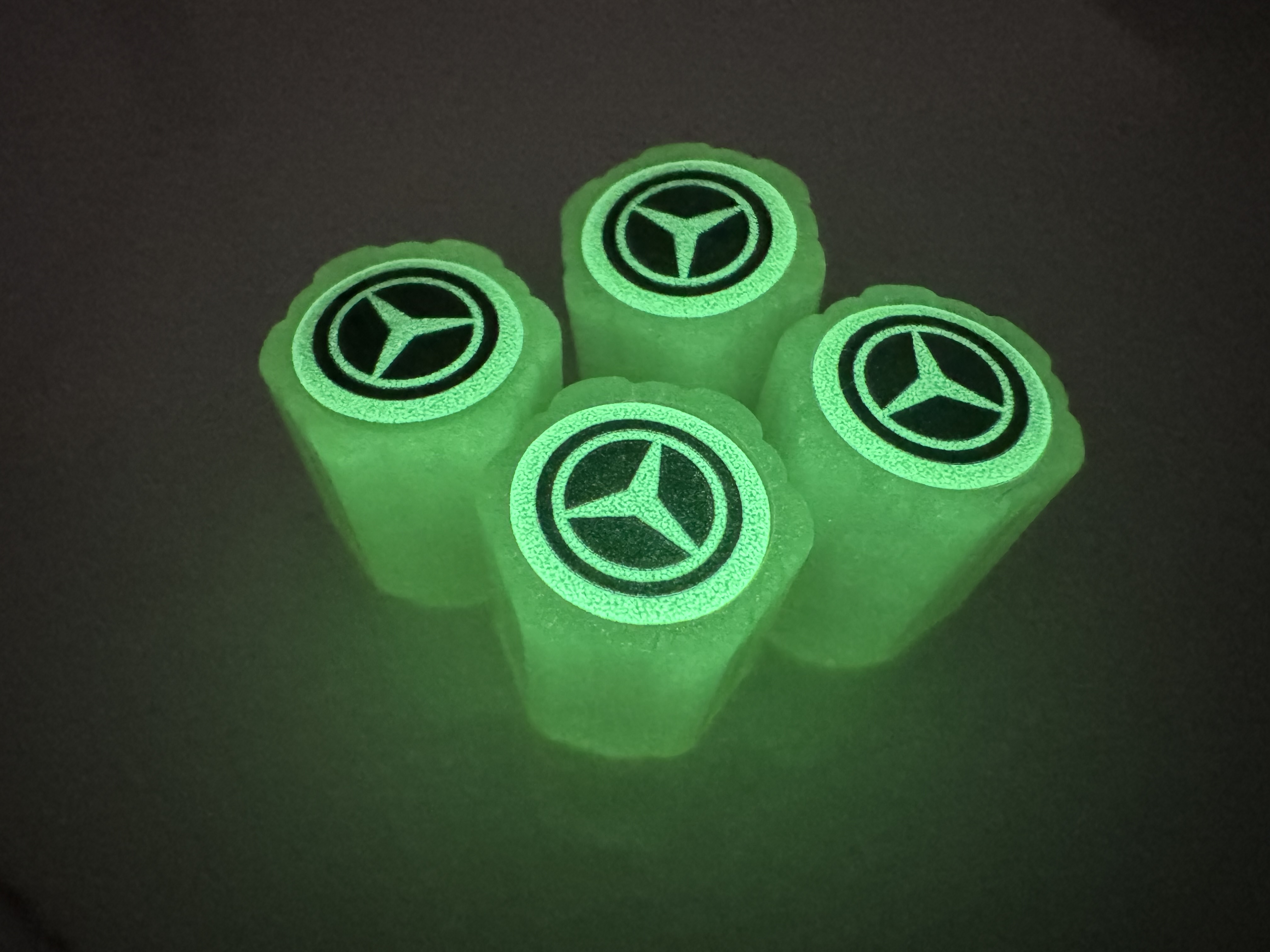 Merecedes Benz Valve aten caps, Glowing tire caps for Cars Trucks Motorcycles SUVs and Bikes Glow